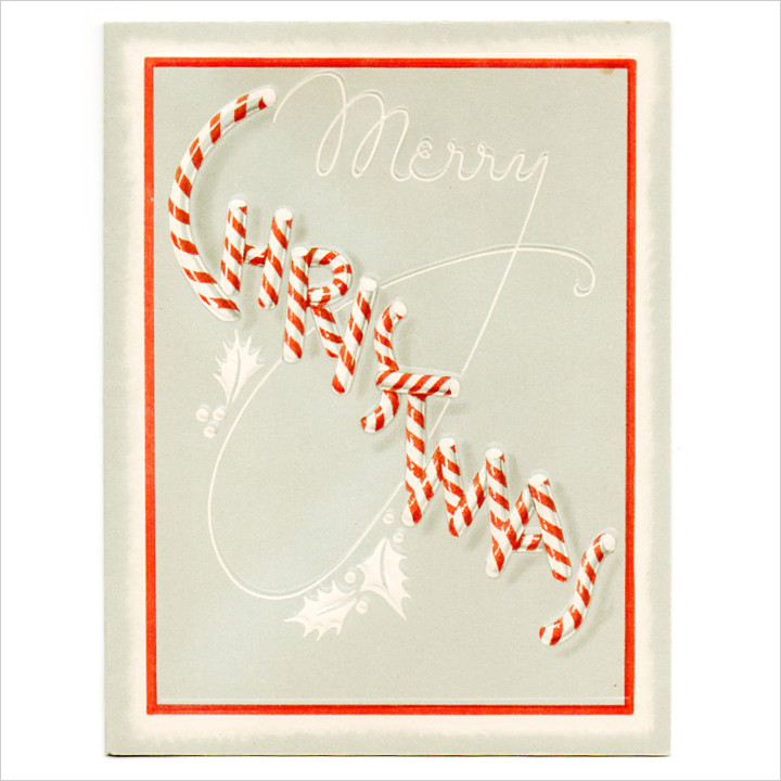 USAヴィンテージ1940年代紙ものクリスマスカード|キャンディケインのアンティークカード