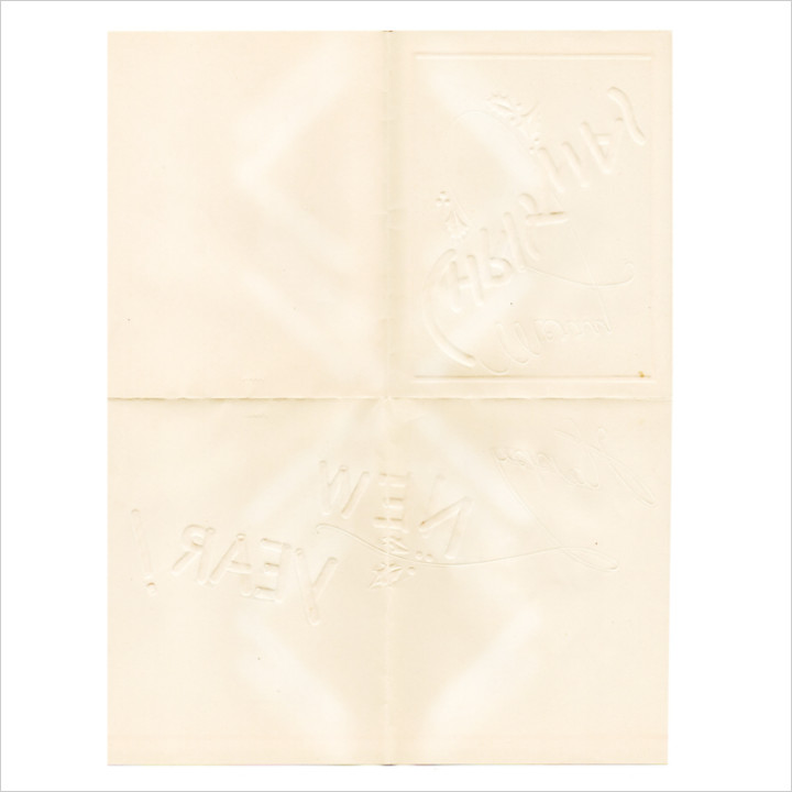 カードは型押しでエンボス加工がされており、赤と白の文字は立体的に作られています。