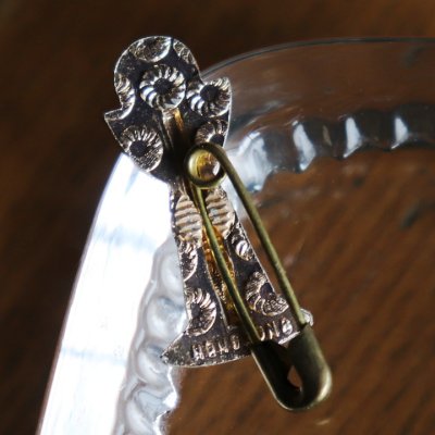 1980年代の香港で作られたブローチです。ヴィンテージ品としては比較的新しいバッジですが、シンプルながら聖杯の形状が可愛らしく魅力的なアイテムです。
