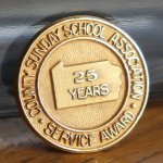 ペンシルバニア州立のサンデースクールで、このピンバッジはスクールの教師やアシスタントティーチャーなどの指導者を25年勤めた記念に贈られるゴールドバッジです。