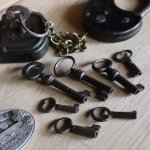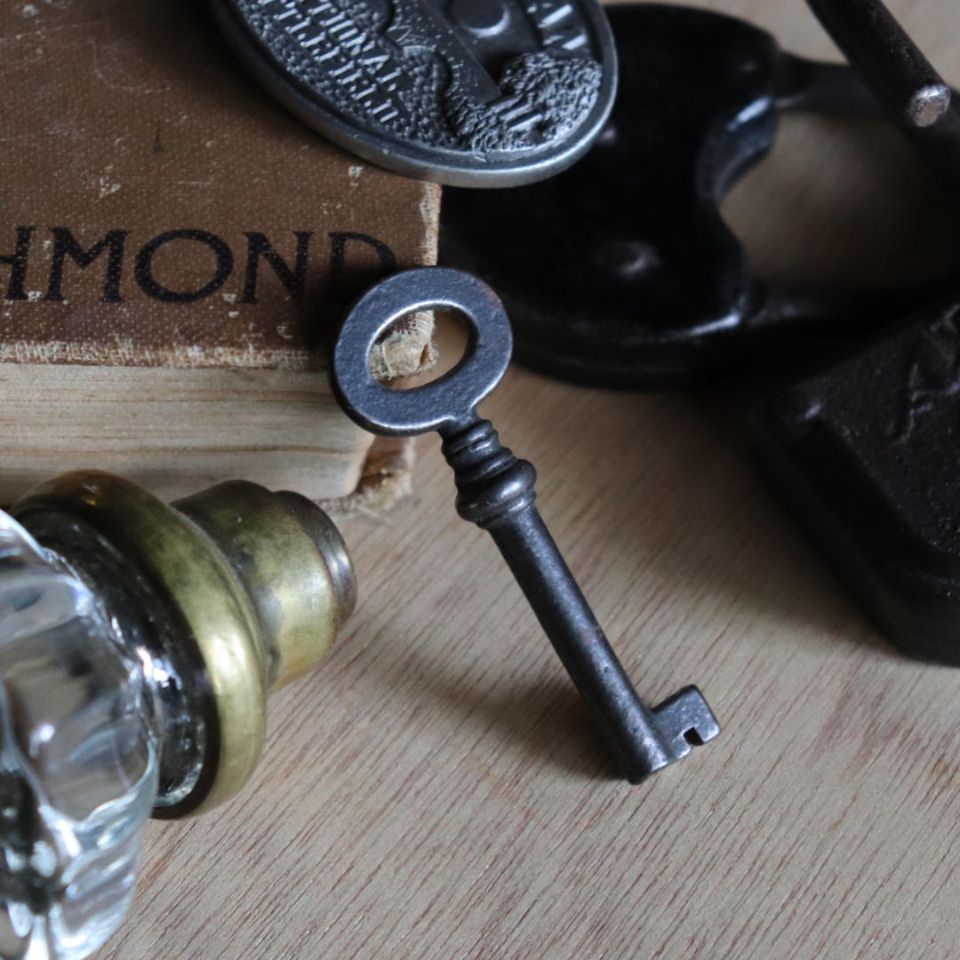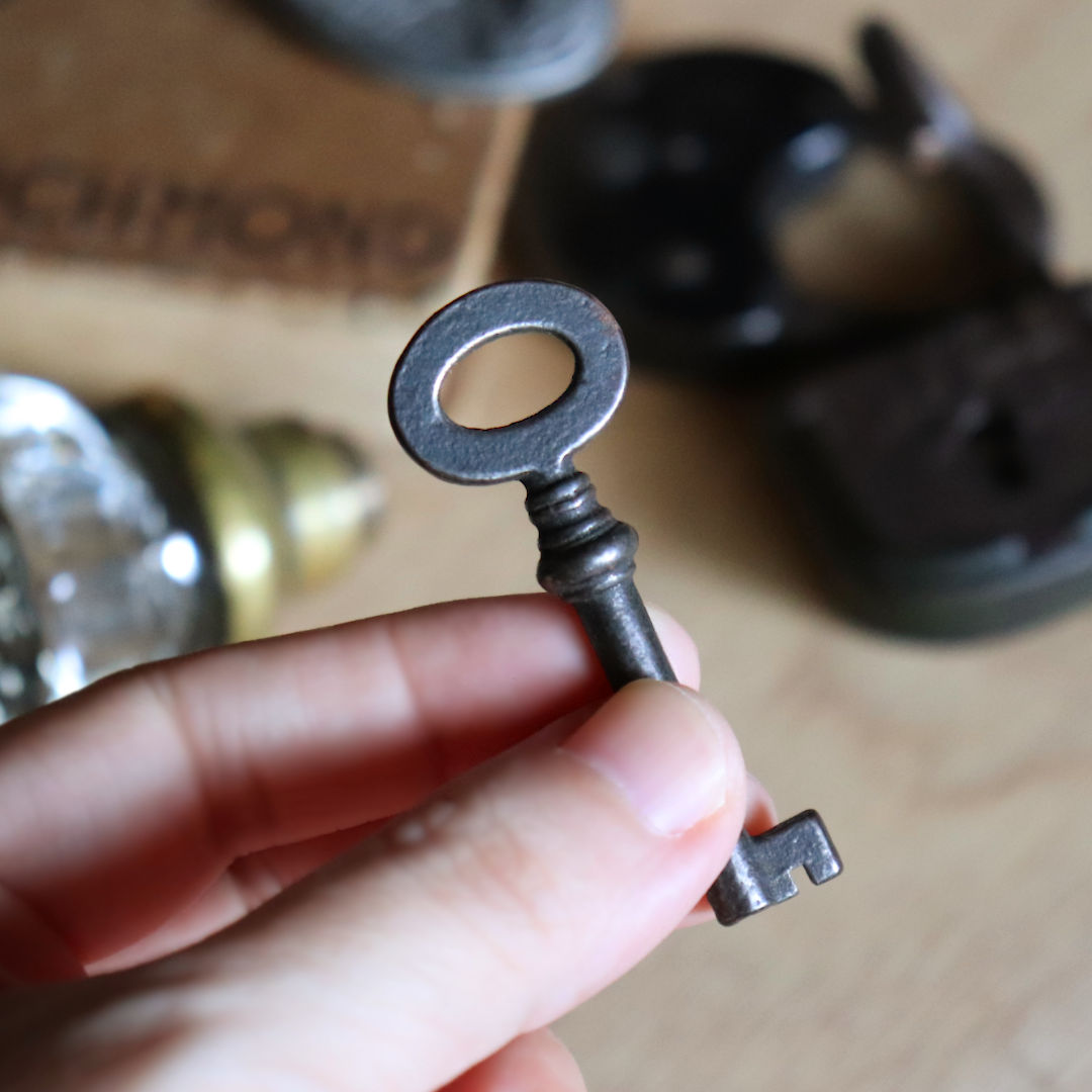 実際にパドロックの開錠やドア扉、チェストなどの開錠に使われていたものでですが、開錠する本体とは別に鍵だけが残ったものです。