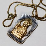 美しい真鍮製のヴィンテージチェーンとキラキラと輝くメダイが美しいネックレスです。