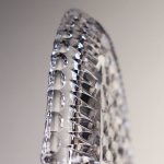 カットはプレートの裏側から施されており、表面のフラットな面からは美しいダイヤ型のカット模様が透けて見えます。