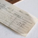 手書きのサインや記入された数字、小切手の黄ばみやヤレ感が大変あじのある風合いです。