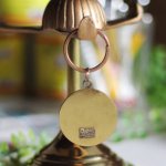 USAヴィンテージの真鍮製キーホルダーです。丸い真鍮製のプレートにはペンシルベニア州にあるCEDAR CREST COLLEGEの学校の紋章が彫刻されています。