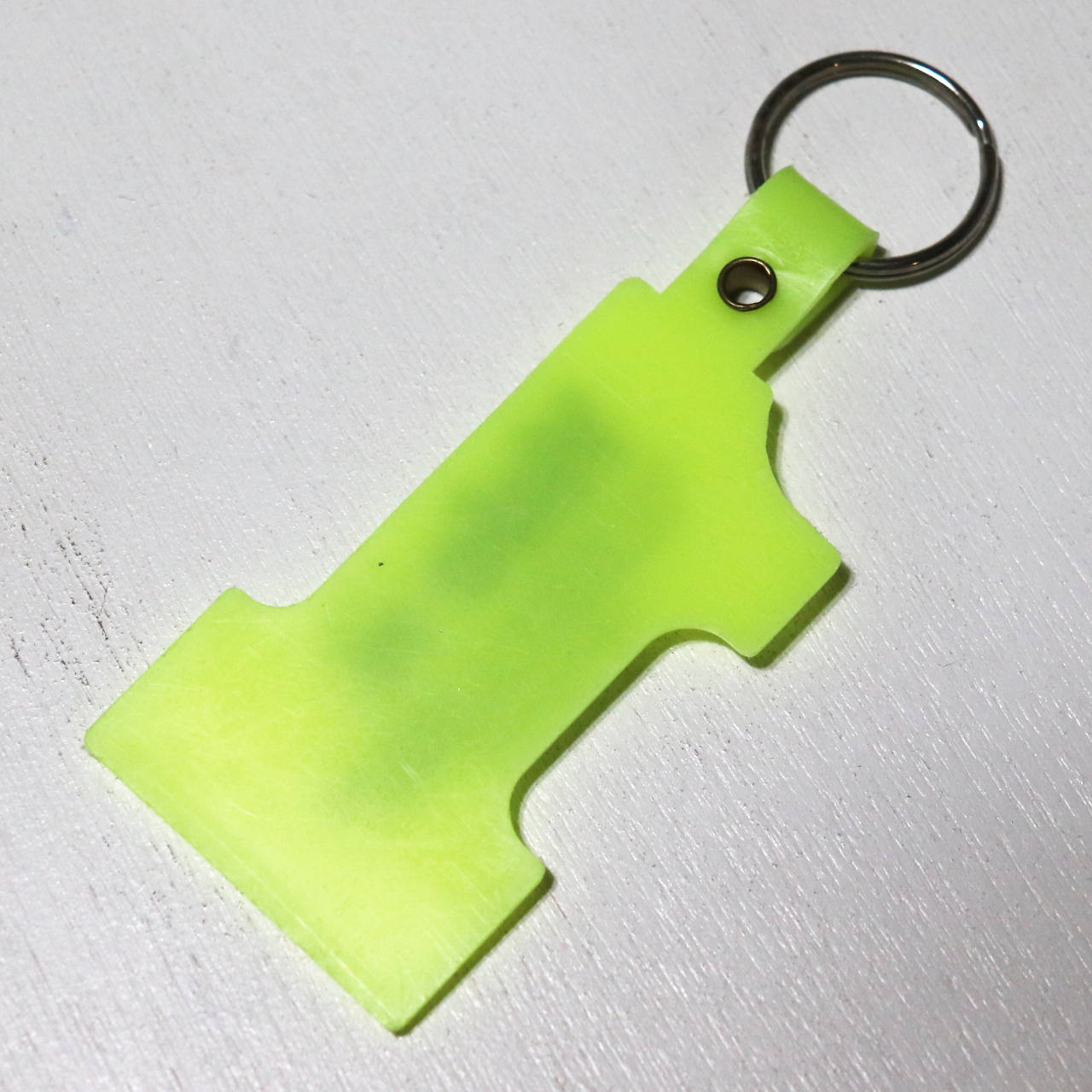 1の形にフォークリフトなどの運搬機器を製造する会社Yale社のロゴがプリントされた、ポップで可愛い色や形がなんともアメリカらしいキーホルダーです。
