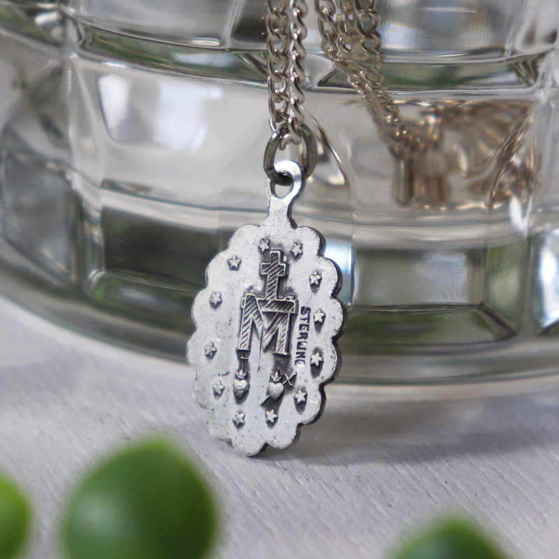 【STERLING SILVER】アンティークジュエリー|USAヴィンテージ不思議のメダイ聖母マリアのミニペンダントネックレス