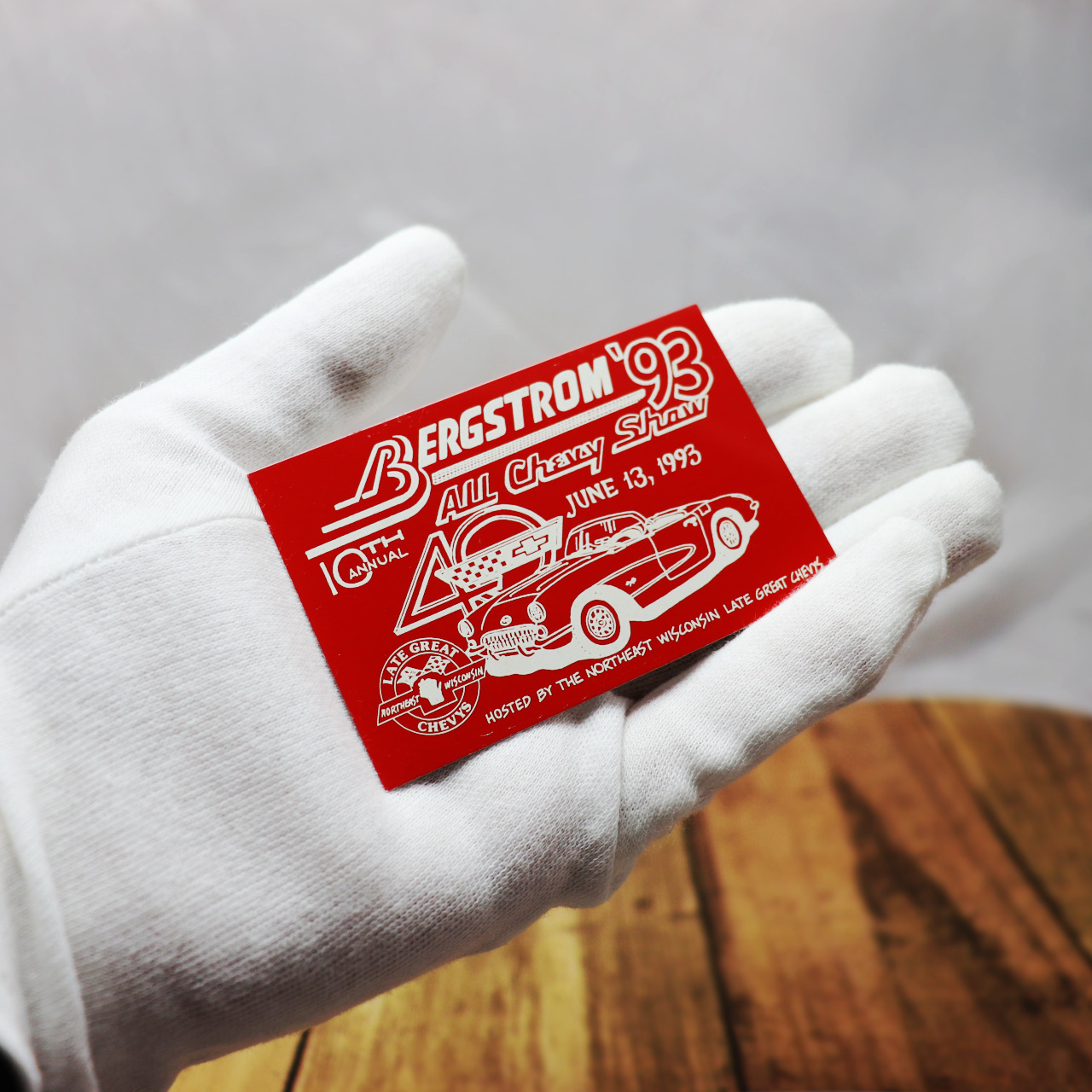 USAヴィンテージクラシックカーショーダッシュボードプラーク'93 BERGSTROM All Chevy Show赤|アメリカン看板 [OTH-25-027]
