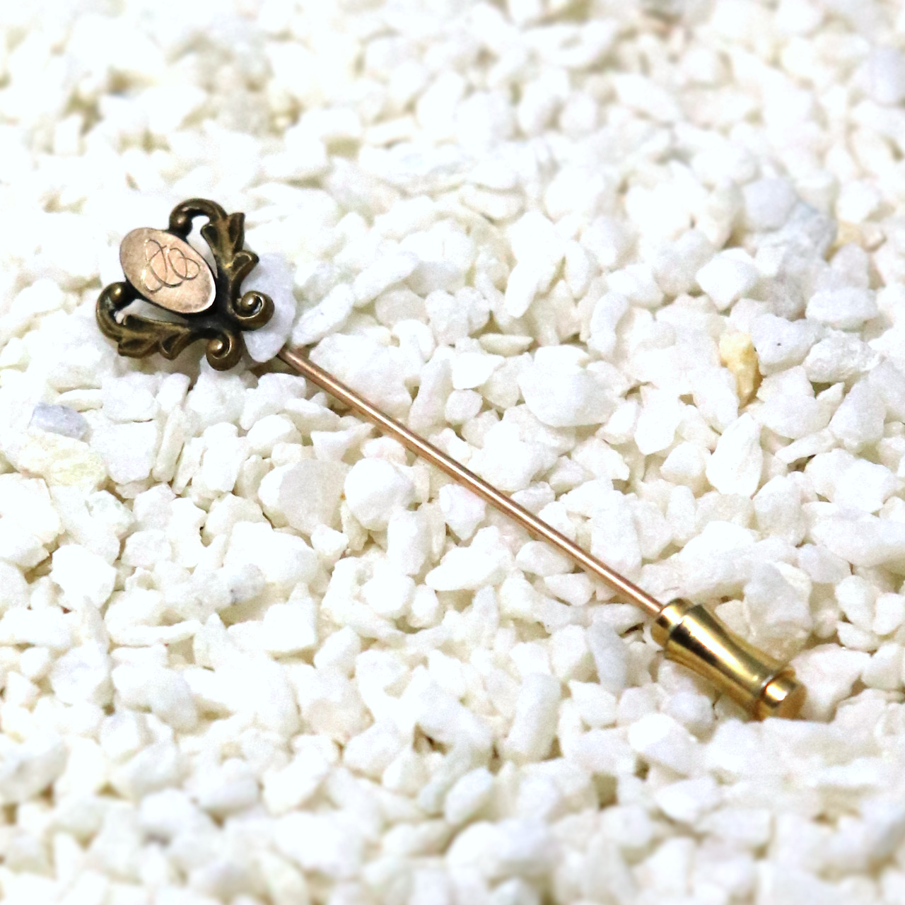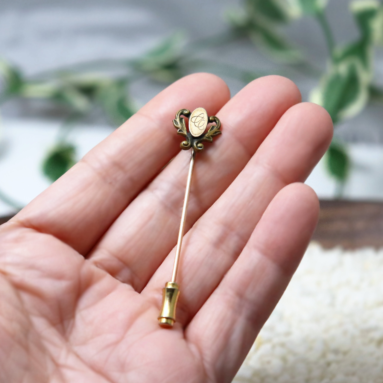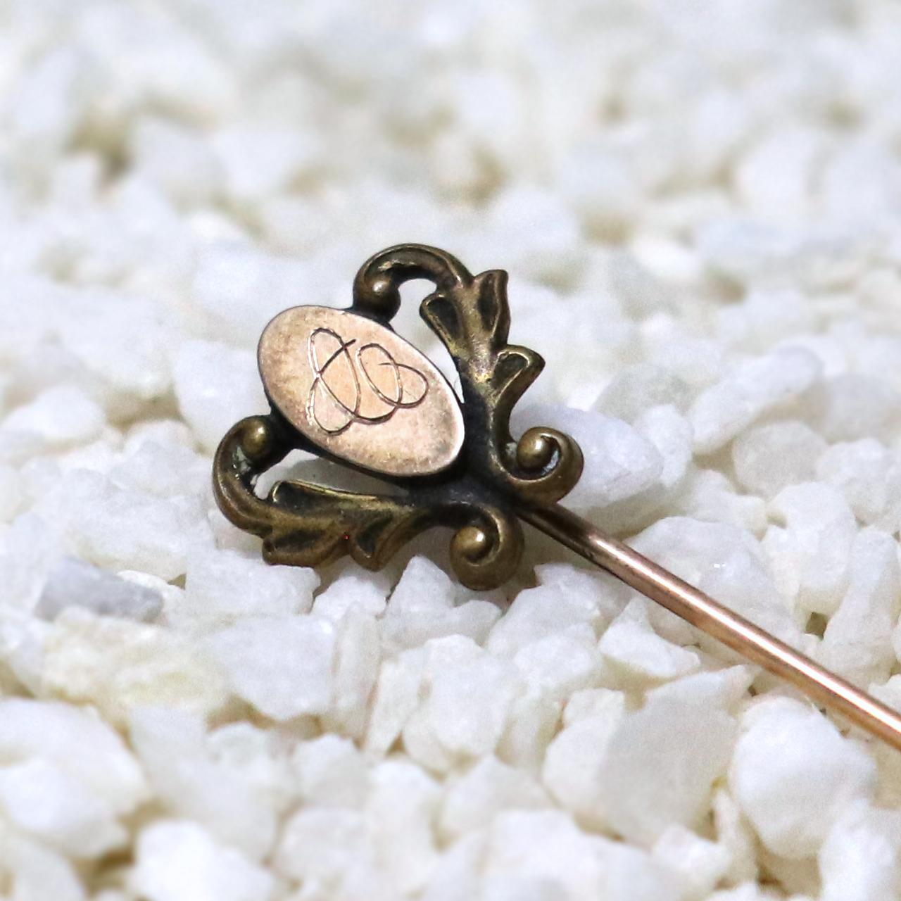 USAアンティークヴィクトリアンカリグラフィC彫金ハットピン|ブローチ・ピンバッジ [ACS-26-005]