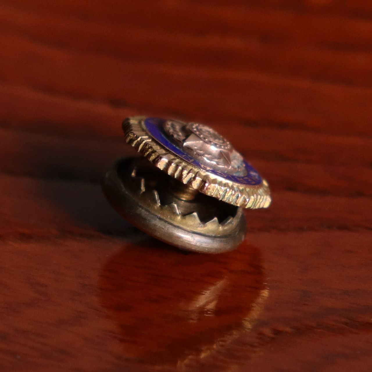 金属部分には経年によるくすみ、エナメル部分には使用によるスレや小傷あり。裏面のピンに若干の曲がりあり。詳細