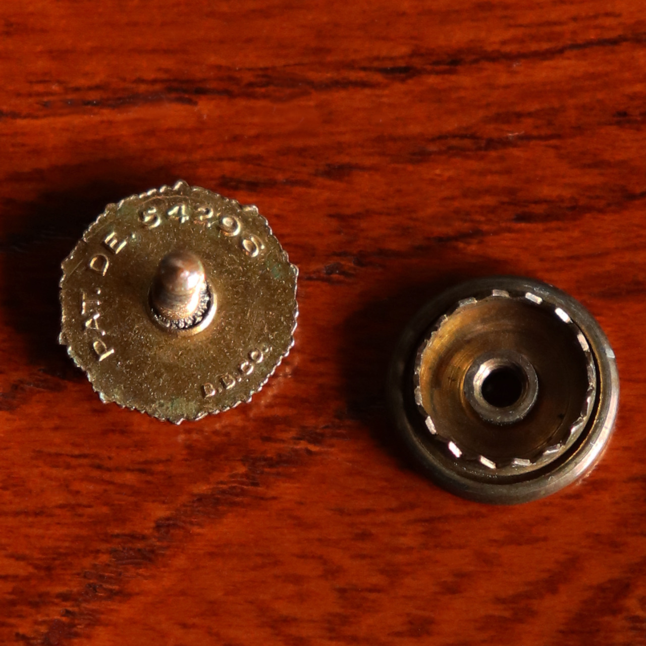 「PAT.DE.54296」を持つピンバッジは留め具の技術や意匠の作り込みの精巧さからコレクターの中でも高値で取引きされるコレクション性の高いバッジです。