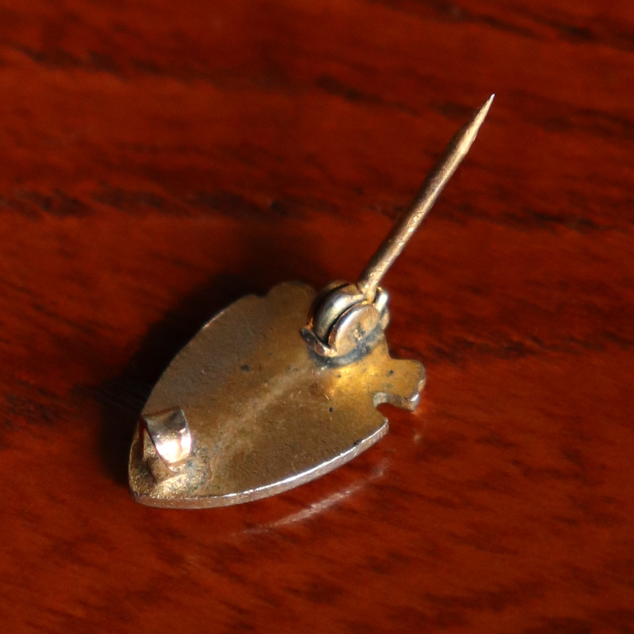 ハードエナメルと呼ばれる七宝焼きの技法で装飾されたバッジです。