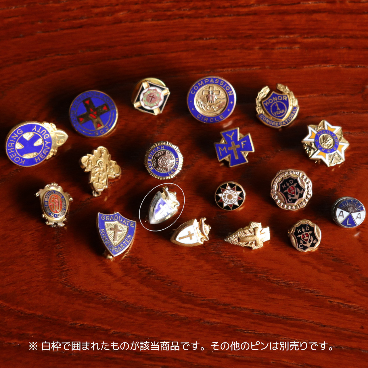 USAヴィンテージクリスチャンブローチ青|キリスト教ピンバッジ十字架・ランプ