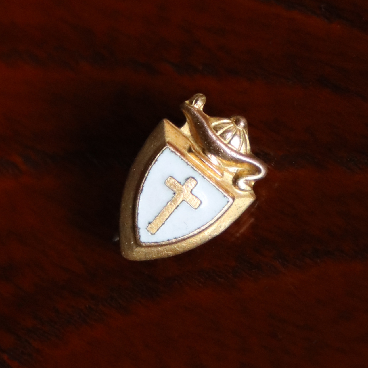 文字などが入っていない大変小さなピンのため、クリスチャンバッジであること以外、どの教派かなどを特定することは出来ません。