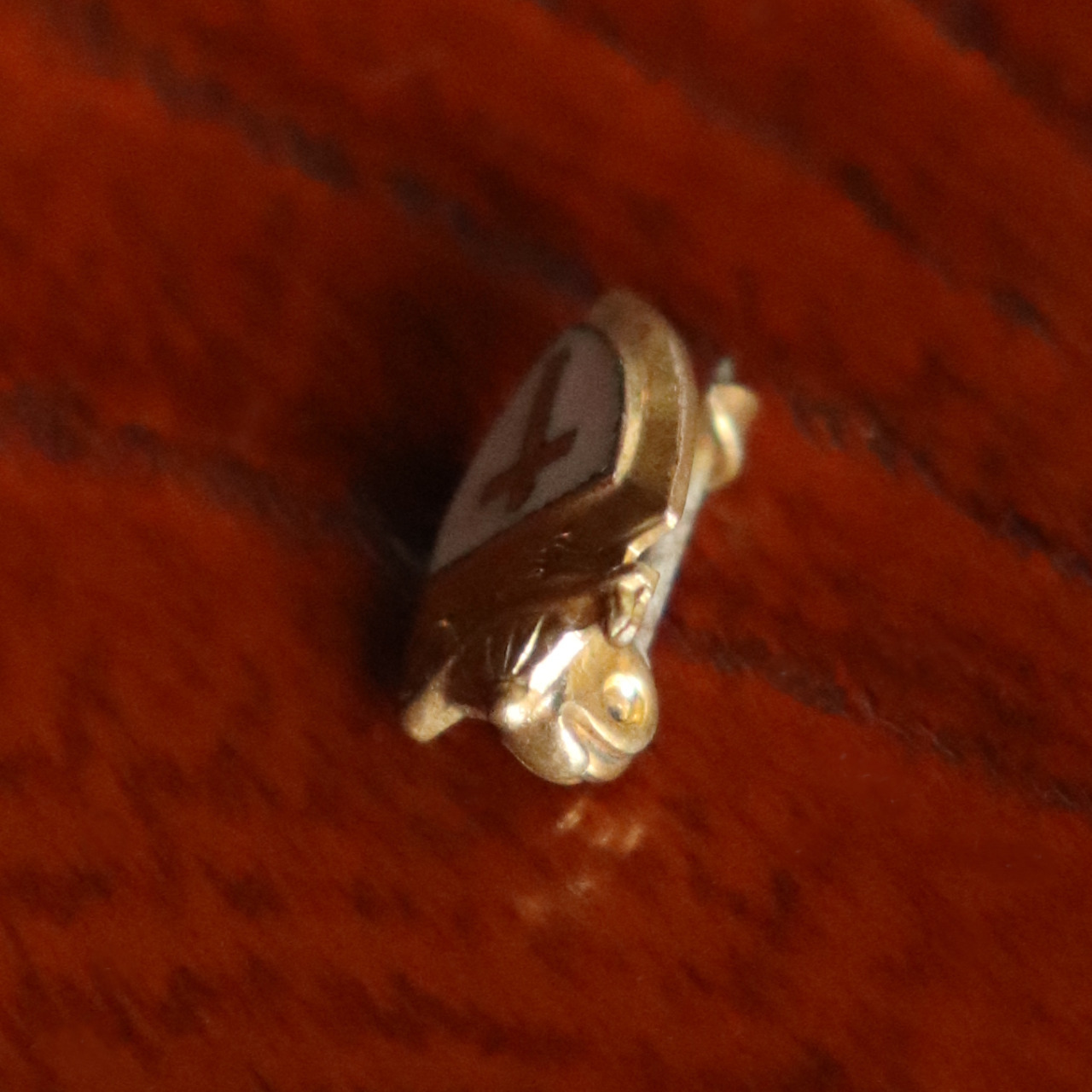 ハードエナメルと呼ばれる七宝焼きの技法で装飾されたバッジです。表面の疑似金メッキも綺麗に残っています。
