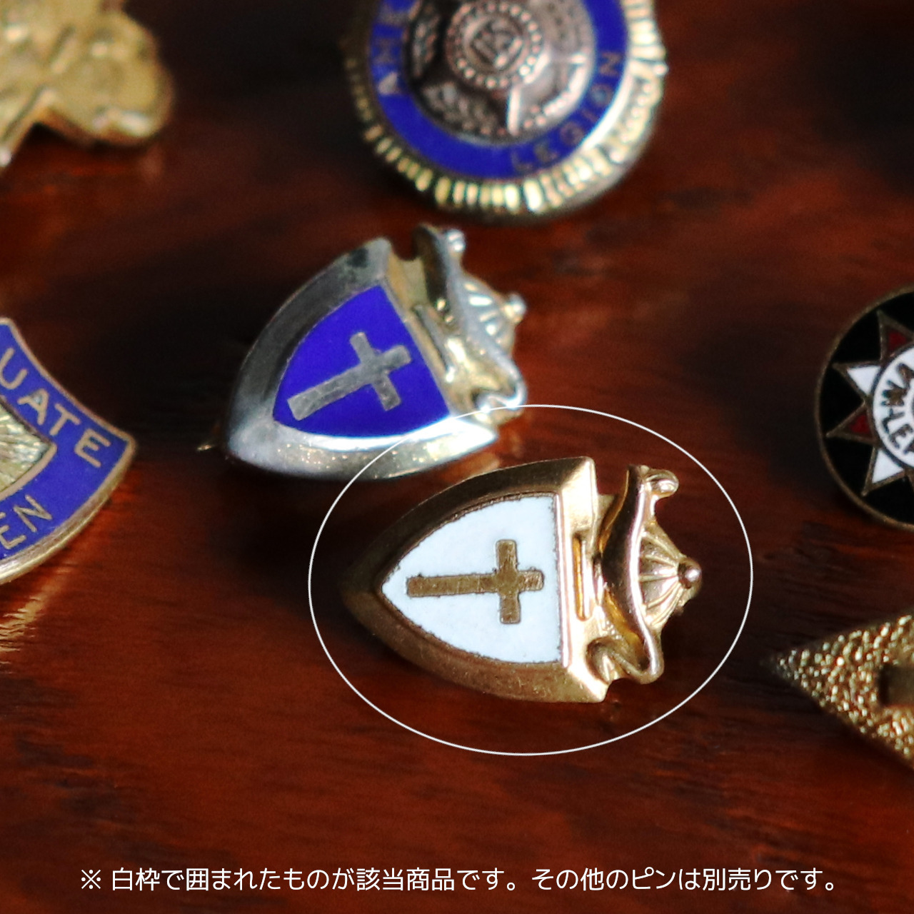 USAヴィンテージクリスチャンブローチ白|キリスト教ピンバッジ十字架・ランプ
