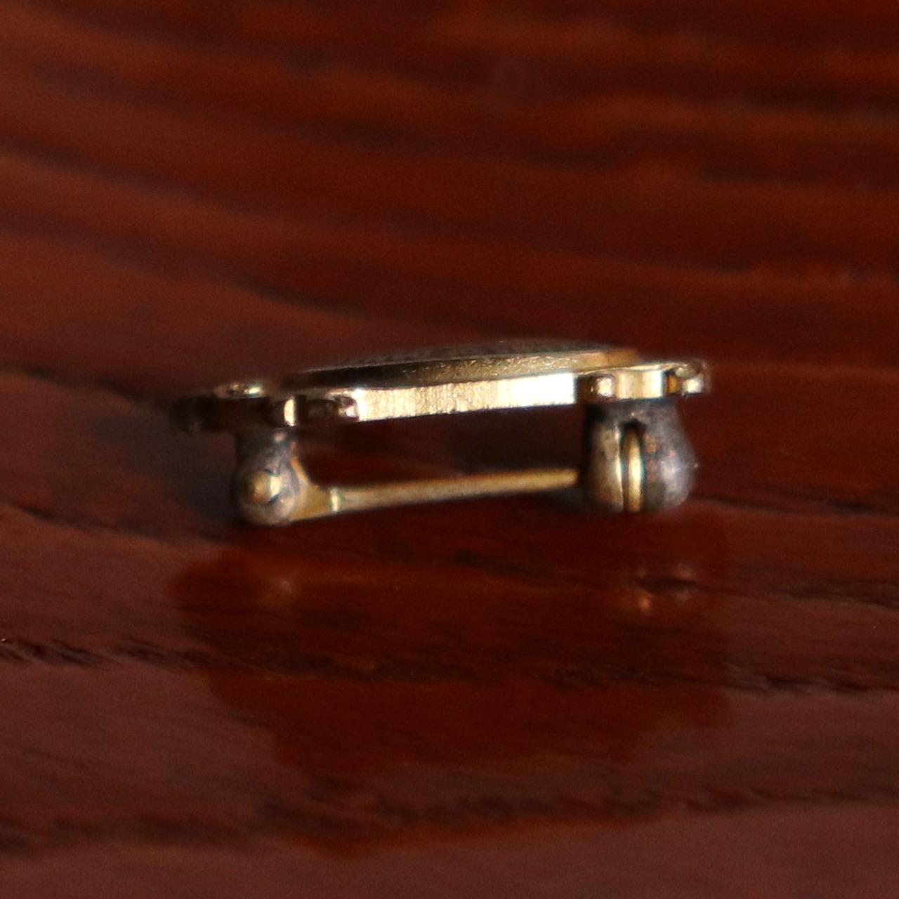 疑似金メッキの輝きも今なお美しく、裏面の留め具もダブルロック式になっているなど、細部まで作り込まれているのが分かります。